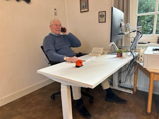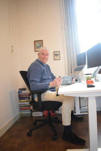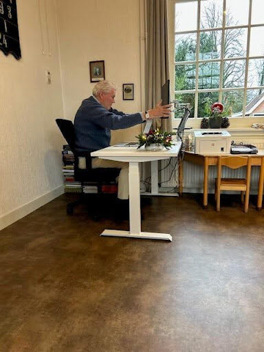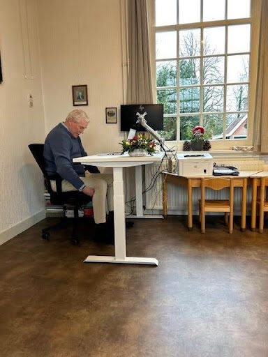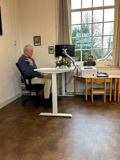 Met een goed ingesteld zit/sta bureau, de beeldschermen op de juiste hoogte, het plat liggend compact toetsenbord en de verticale muis erbij spreken wij van een ergonomische werkplek.