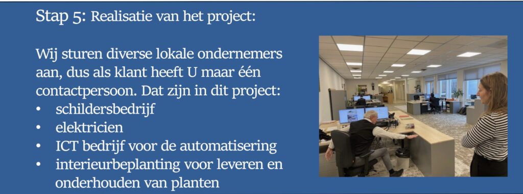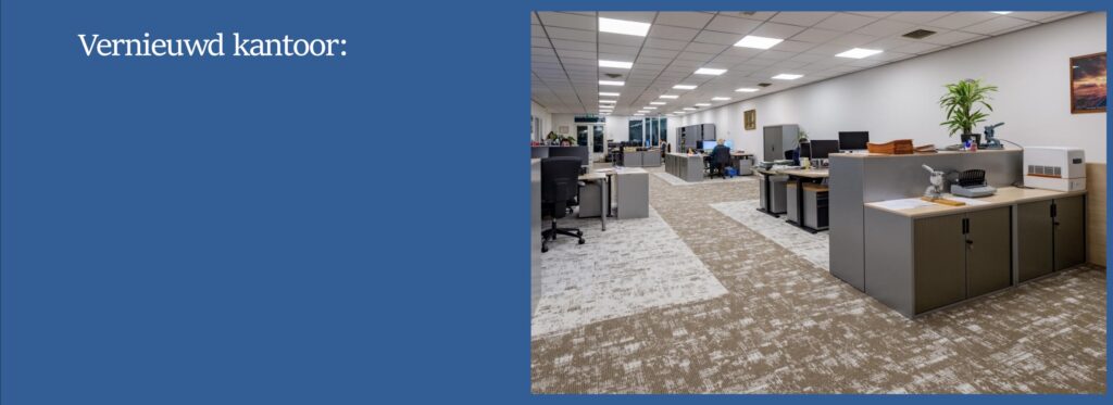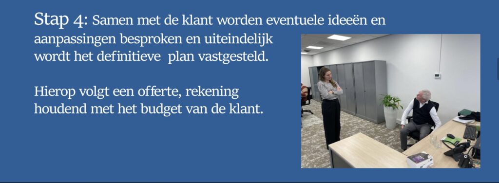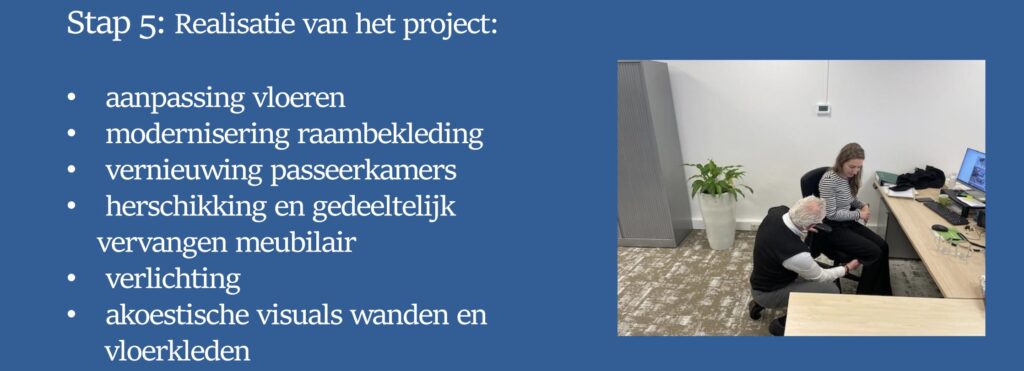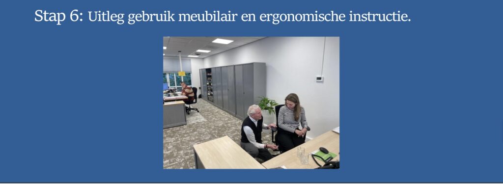 Na de verbouwing gaven we een gedetailleerde uitleg over het nieuwe meubilair en de beste ergonomische werkhoudingen. Dit project toont onze inzet om te luisteren naar onze klanten en een werkplek te creëren die zowel mooi als praktisch is.
